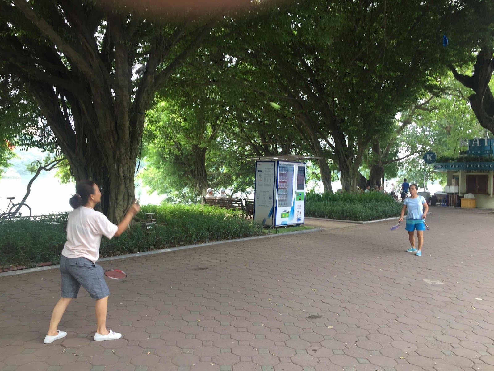 Most of these guys were doing this before setting off to work,.....some ladies clad in what was clearly their office wear,.....old farts my age and older,.....badminton players ( no net) with two racquets,..one in each hand.